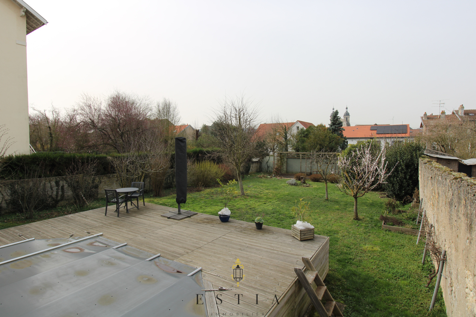 À l’extérieur, le charme opère immédiatement avec un grand jardin, véritable havre de paix en plein centre-ville, complété par une piscine pour profiter pleinement des beaux jours. Une cave vient parfaire l’ensemble.
