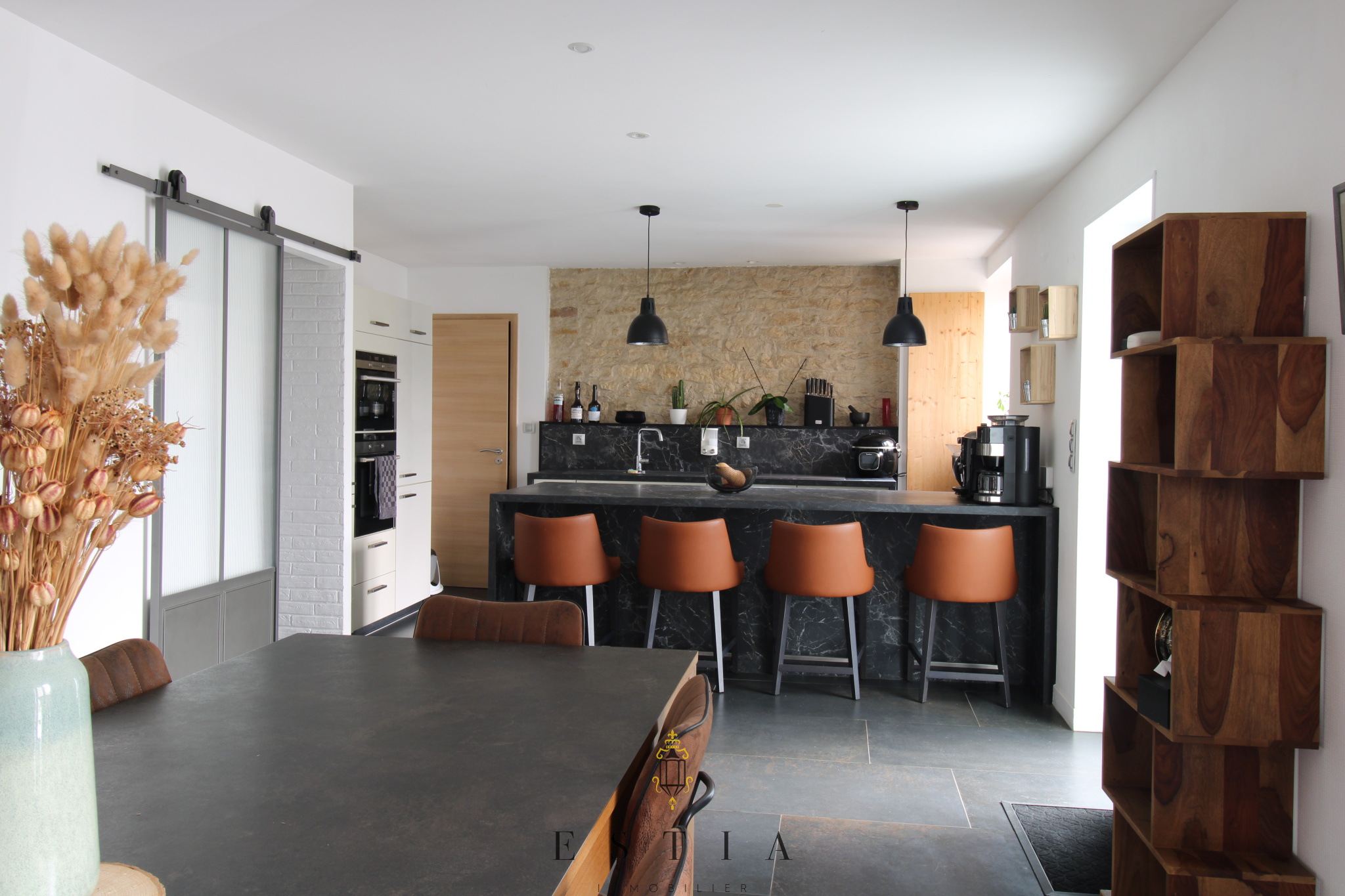 À deux pas de toutes les commodités, elle offre un cadre de vie idéal alliant confort moderne et charme. Dès l’entrée, vous découvrirez des espaces lumineux et parfaitement agencés. La cuisine équipée, fonctionnelle et élégante, s’ouvre sur un espace de vie chaleureux, sublimé par un poêle à granulés pour des soirées conviviales en toute saison.